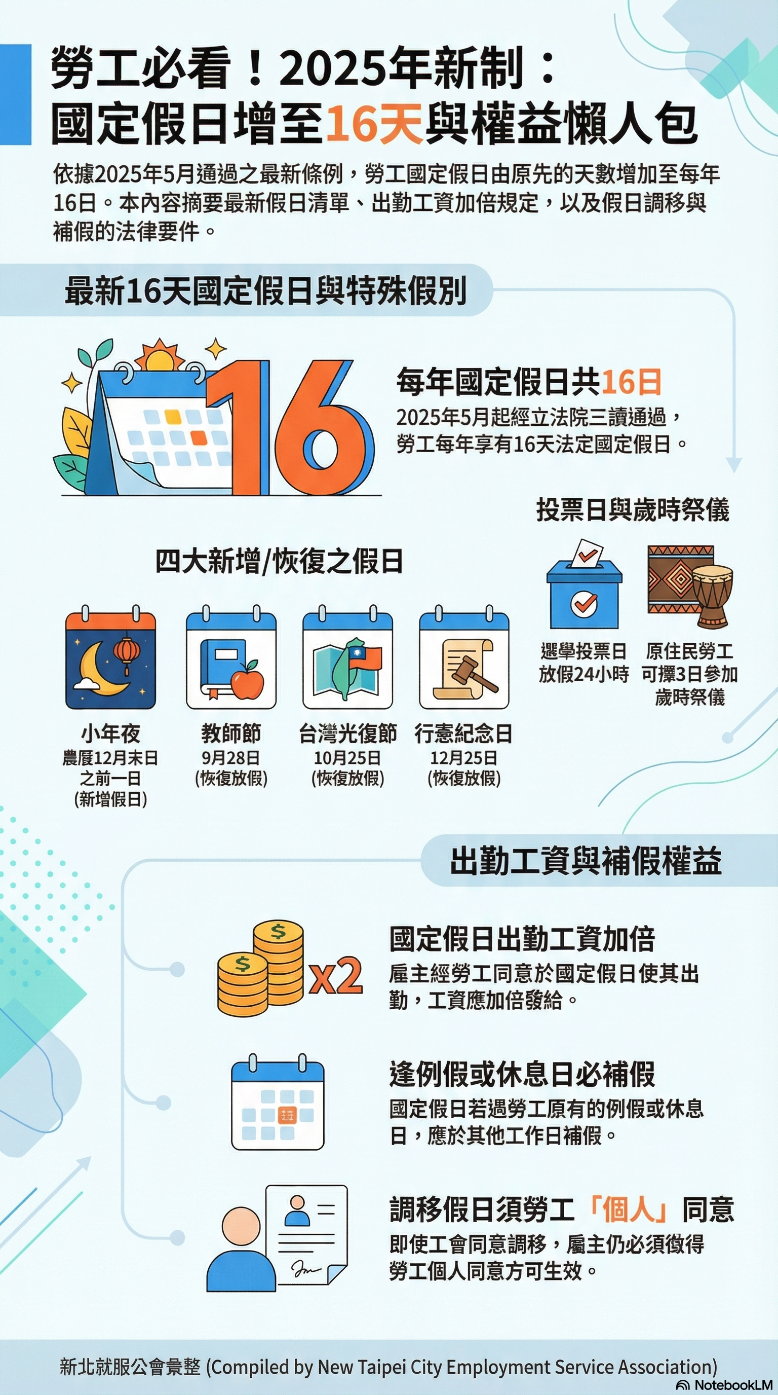 國定假日增至16天
