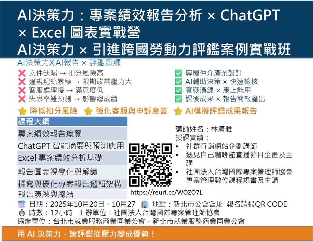 💡專案績效+勞動力評鑑,用AI決策變優勢!📊 免費實戰班立即報名👉 https://reurl.cc/WOZO7L